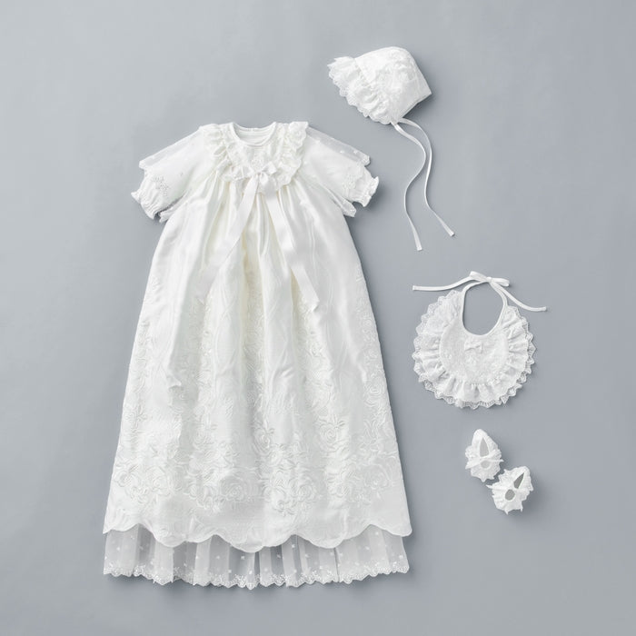 日本の伝統が生み出す「気品と美」 シルクフォーマルシリーズは、お子さまの記念日を華やかにいろどる珠玉のラインナップです。 能登の地で生まれた気品あふれる光沢の上質なシルク素材を使っています。 ひと針ひと針丁寧に施された、格調高くエレガントな美しいレース刺繍のドレスをぜひごらんください。 京都西陣で伝統の製法により織り出される高品位で繊細なシルクのネクタイは、メイドインジャパンの手間を惜しまない洗練された技術をふんだんに詰め込みました。 ※取り扱い商品は、店舗により異なります。 詳しくは取扱店舗までお問い合わせください。