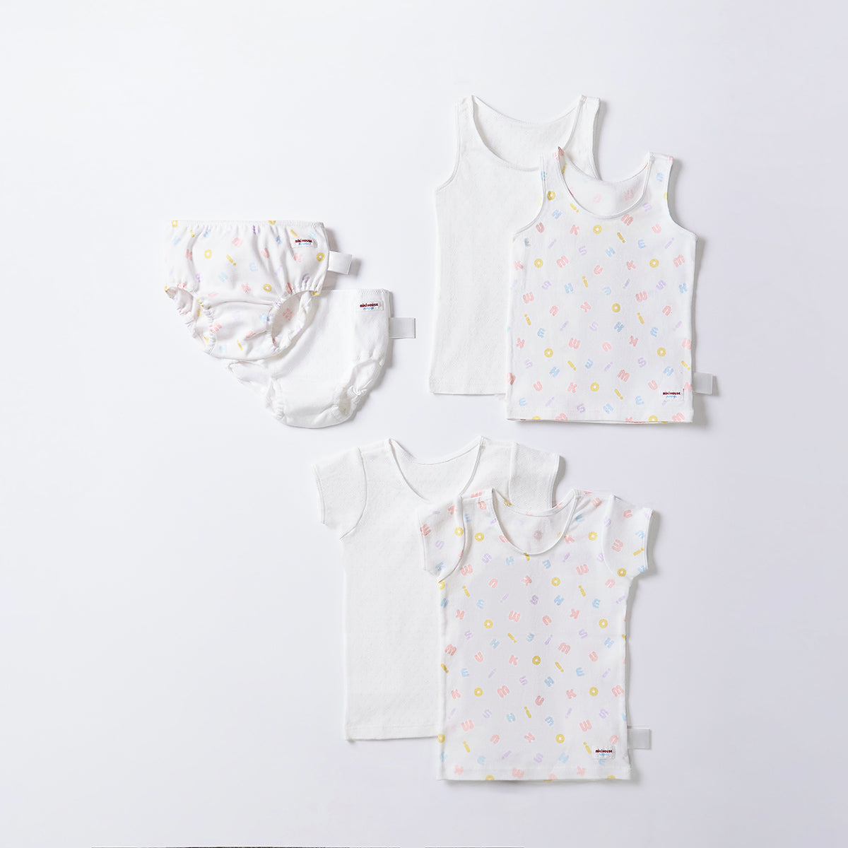 This set of two pieces is a great, convenient set of two, featuring a gentle pastel logo all-over print and plain underwear.