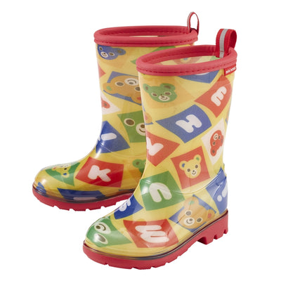 These all-over rain boots have a fun design that looks like puzzle blocks are lined up.