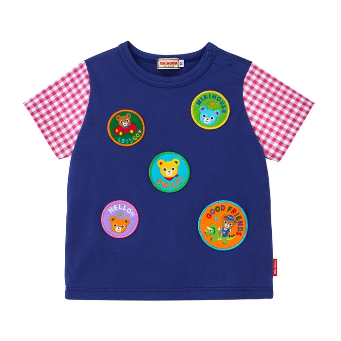 This is a short-sleeved T-shirt with a motif patch that Pucchi and boys love.