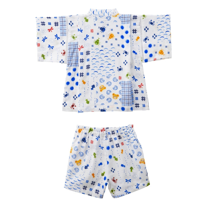 This Pucchi jinbei suit is printed on a patchwork pattern with a summer tradition.