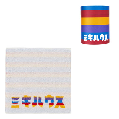 In katakana, "MIKI HOUSEThis mini towel is expressed in a colorful striped pattern.