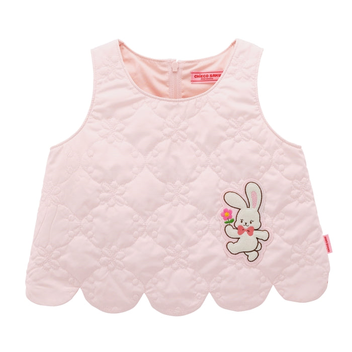 お花型がかわいいオリジナルキルティング生地のベストです。コーディネートが一気に華やかになるキルティングベスト。同シリーズのスカートとセットアップコーデがおすすめです。