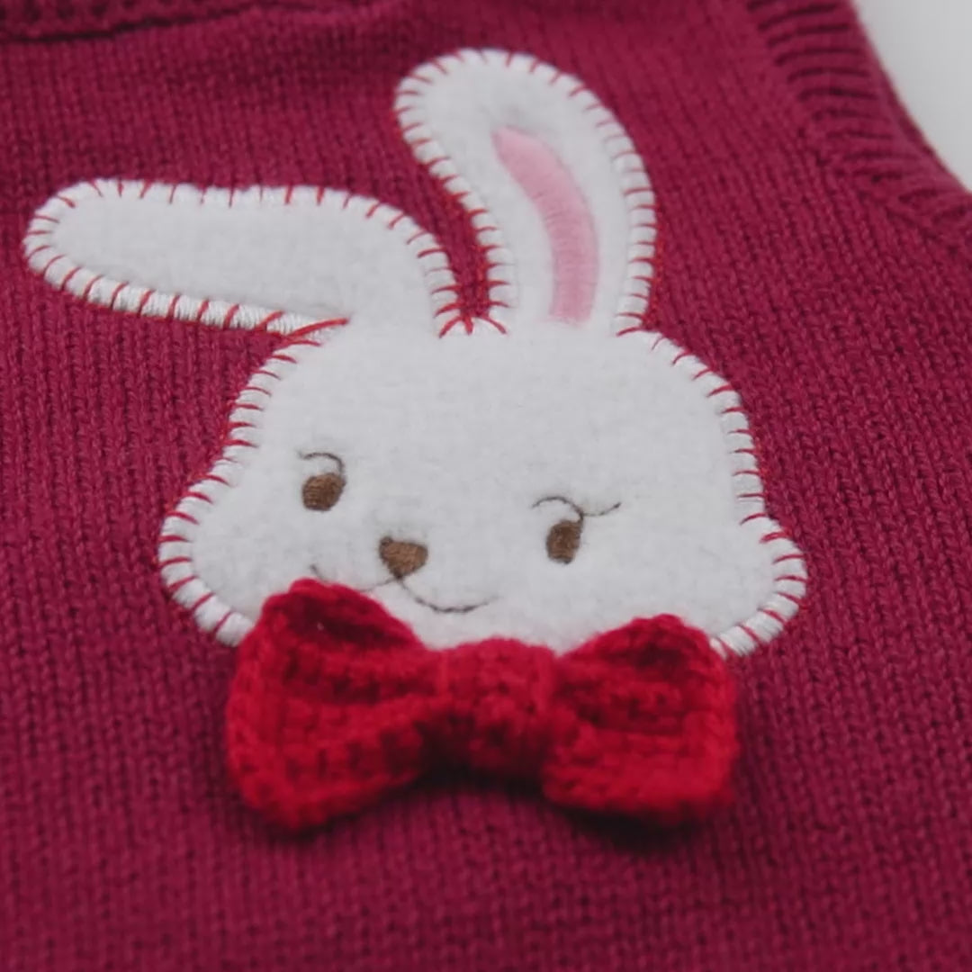 This wine red bustier has an impressive chic color. This cotton knit bustier with ribbons and flower knitting motifs can be added to a T-shirt or dress to create a gorgeous style.
