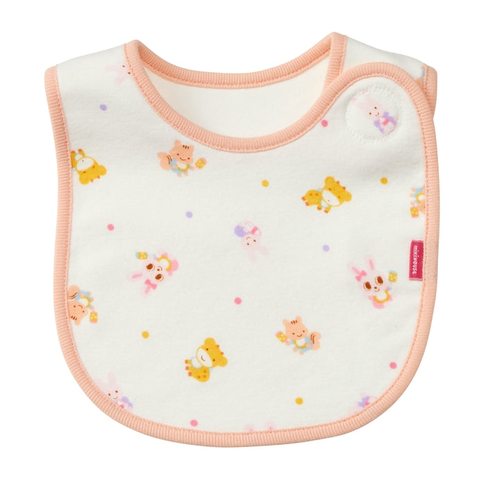 ベビーうさことベビーアニマル、お花柄のスタイです。ミキハウスで人気の柄。同柄のベビーアイテムと合わせて、出産準備や出産お祝い、プレゼントに便利です。