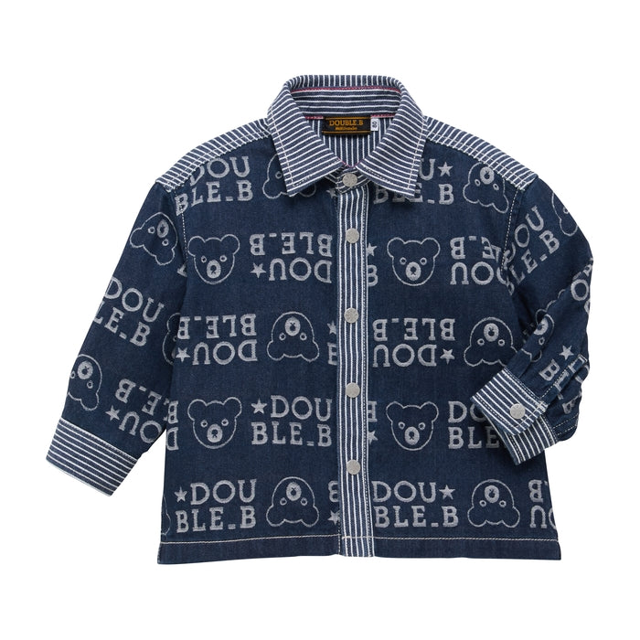 やわらかなジャカードデニム素材のシャツ(長袖)です。オリジナル総柄デザイン×デニム×ヒッコリーのダブルBらしいこだわりのシャツ。同柄シリーズで、ペアコーデが楽しめるアイテムです。