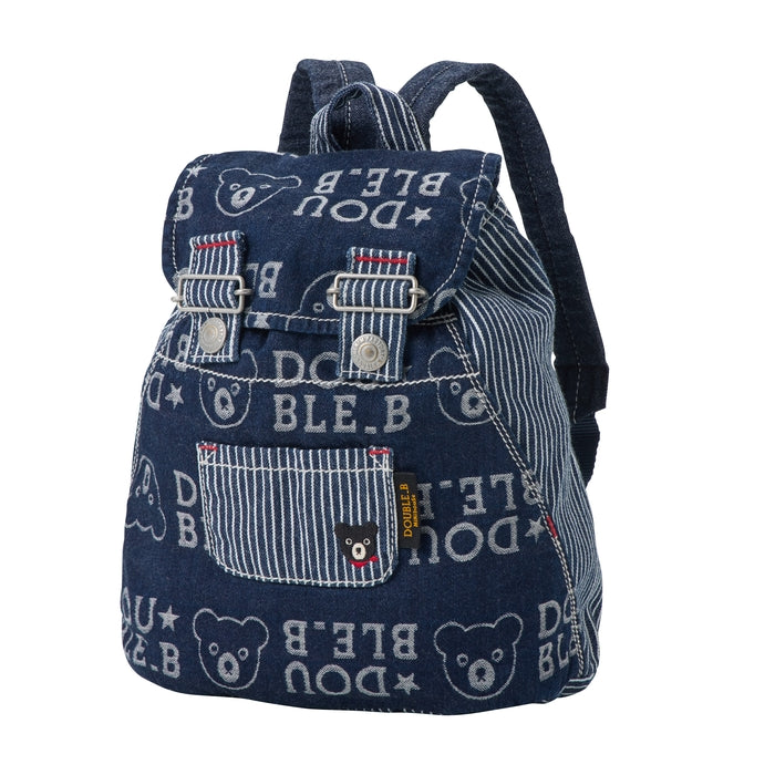 やわらかなジャカードデニム素材のリュックです。オリジナル総柄デザイン×デニム×ヒッコリーのダブルBらしいこだわりのリュック。オーバーオールをリュック型にリメイクしたようなオリジナルデザイン。同柄のウエアで、ペアコーデも楽しめます。