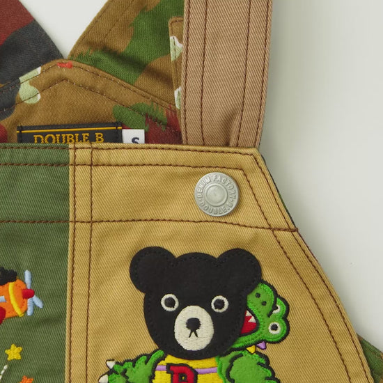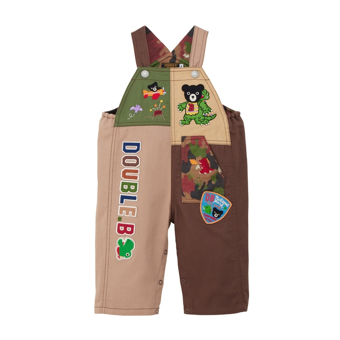 恐竜の豪華な刺繍やワッペンを丁寧に施したオーバーオールです。