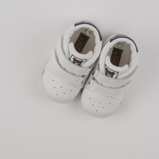These are first baby shoes made from high quality, soft, artificial leather. The white-based design makes these baby shoes easy to match with any occasion.