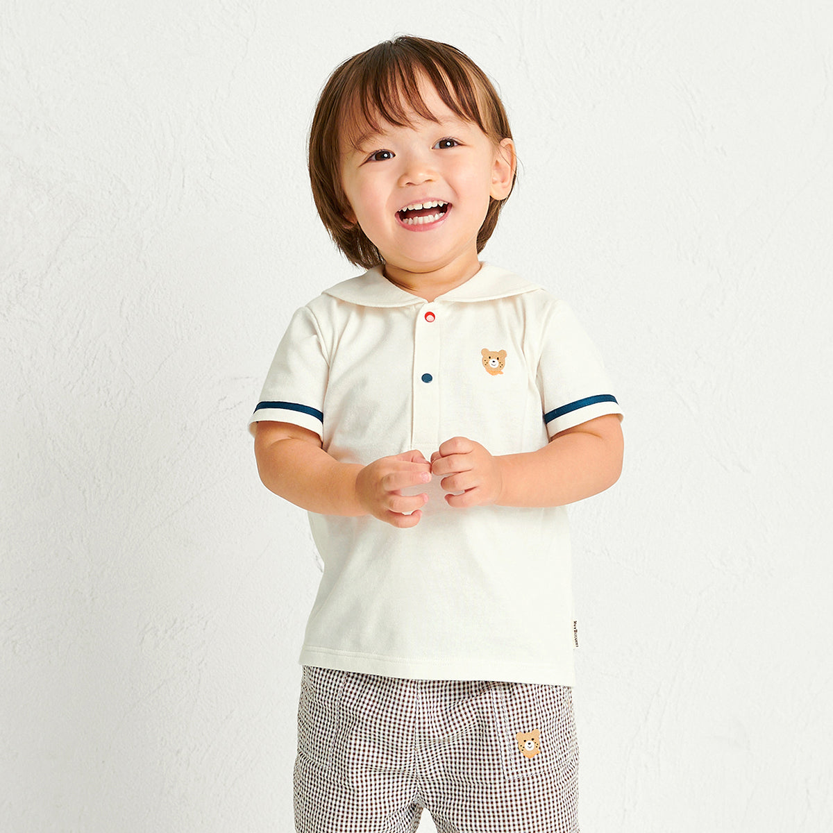 This is a cute short-sleeved T-shirt with a popular sailor collar T-shirt and bear ears.