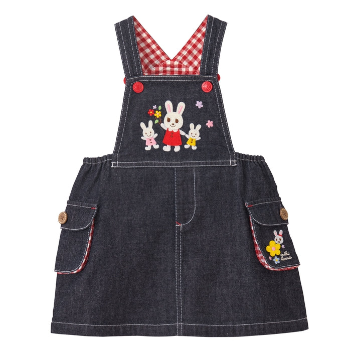 토끼의 귀여운 자수가있는 고급스러운 점퍼 치마입니다.