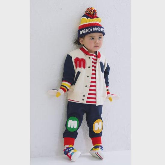 膝パッチのロゴ部分には中綿を入れて、立体的にぷっくり仕上げています。