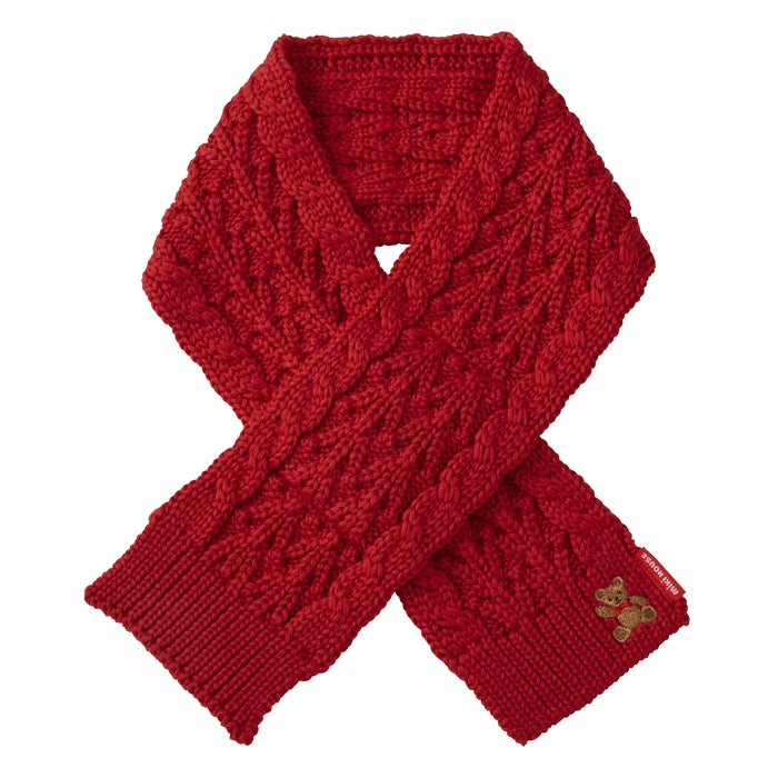 매년 인기있는 케이블 니트 액세서리에서 자수 곰이있는 스카프가 출시되었습니다.