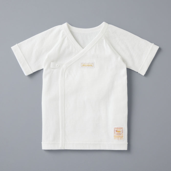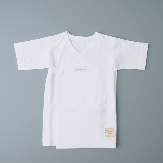 生まれてすぐから着られる肌着、海島綿ニットガーゼ素材の短肌着です。