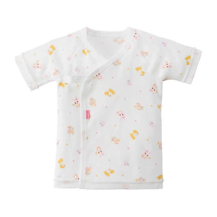 一年中いつでも快適に着ていただけるフライス素材の短肌着です。ミキハウスで人気の柄が、ベビー柄のベビーうさこ・ベビーアニマル柄で登場。女の子に人気のお花のプリント柄も登場。お着替えをより簡単にできるホック仕様の新生児肌着。出産準備の基本アイテムです。