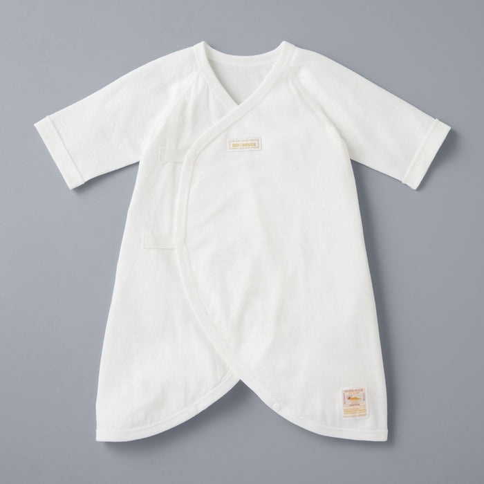 生まれてすぐから着られる肌着、海島綿ニットガーゼ素材のコンビ肌着です。