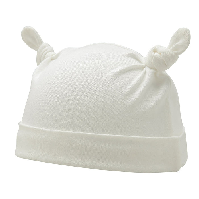이 베이비 후드 (모자)는 귀 같은 매듭으로 귀여운 디자인을 가지고 있습니다.
