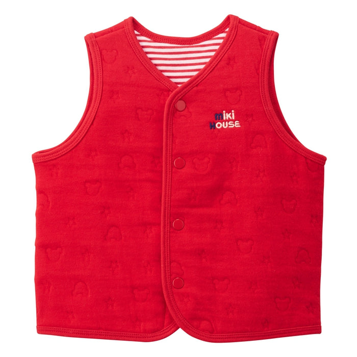 이것은 따뜻해 보이는 니트 퀼트 자카드 조끼입니다.