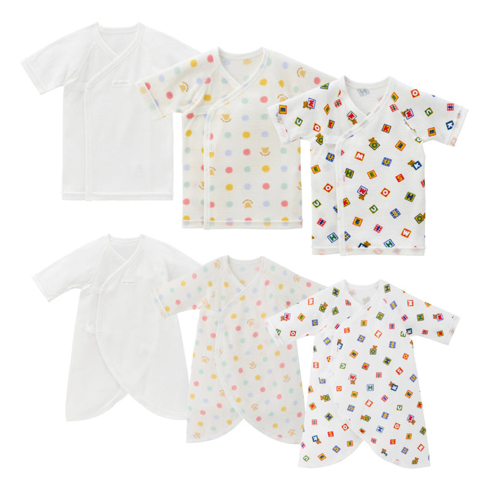 ・短肌着3点、コンビ肌着3点、計6枚セット