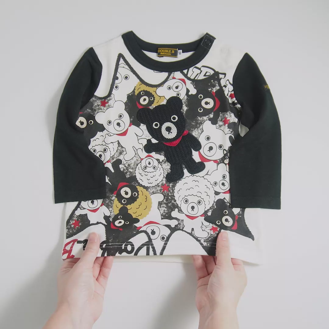 BくんがたくさんプリントされたデザインのTシャツ(長袖)です。残暑の厳しい秋口や、暑い地域の室内冷房対策、日除け対策などに便利な夏向け素材の長袖Tシャツ。
