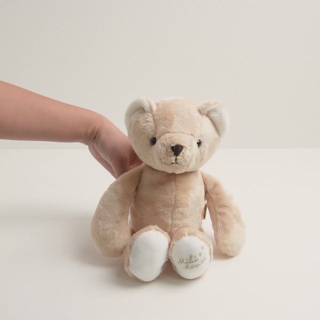 おしゃべりや歌が楽しめる、かわいらしいくまのぬいぐるみです。おなかのボタンを押すと、お口を動かしながらおしゃべりや歌をうたい、ものまねや録音も楽しめる多機能トイ。日本語と英語の2言語対応で、遊びながら自然と英語にふれることができます。長く楽しめる知育トイとして、出産祝いにもおすすめです。