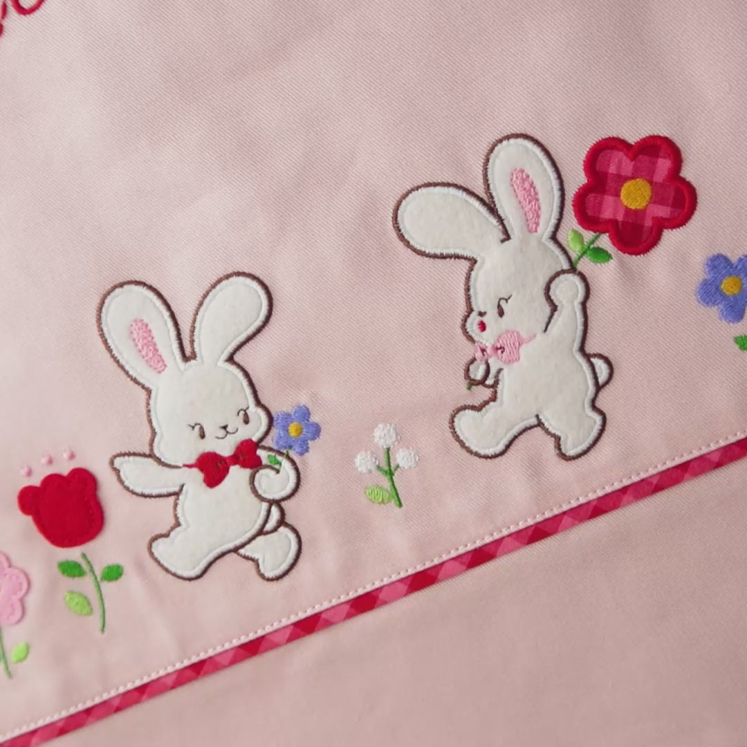 うさぎの「チエコ」が描く、赤やピンクを基調にした可愛らしいデザインのランチグッズが仲間入りしました。