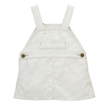 ミキハウスロゴがプリントされたデニム生地はとても個性的です。柔らかさと特別な風合いを出すために、洗い加工とねじれや縮みを抑える加工を施しています。