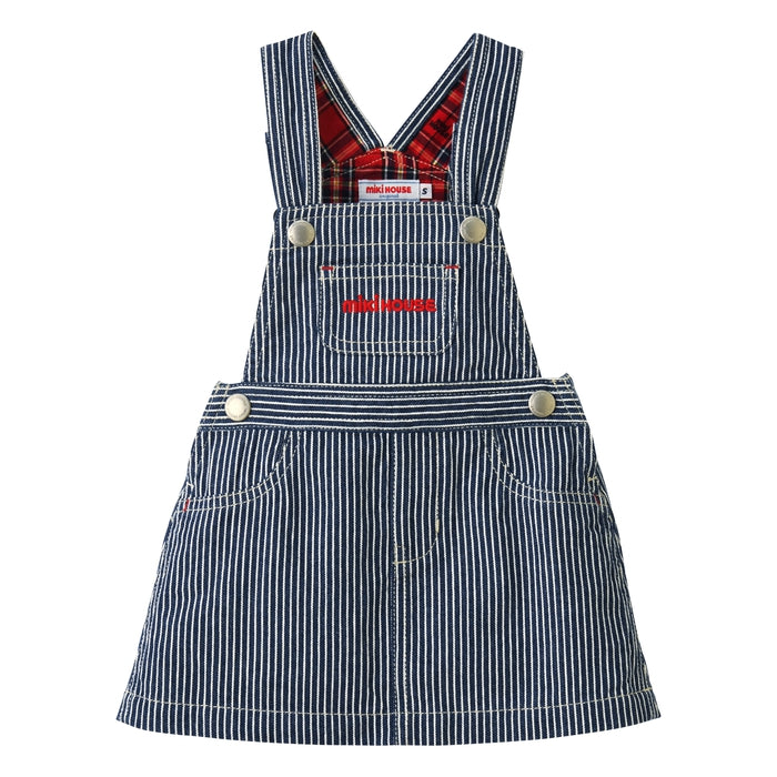 胸当てと背中側の裏地にはミキハウスチェックを使用し、高級感のあるデザインに仕上げました。
