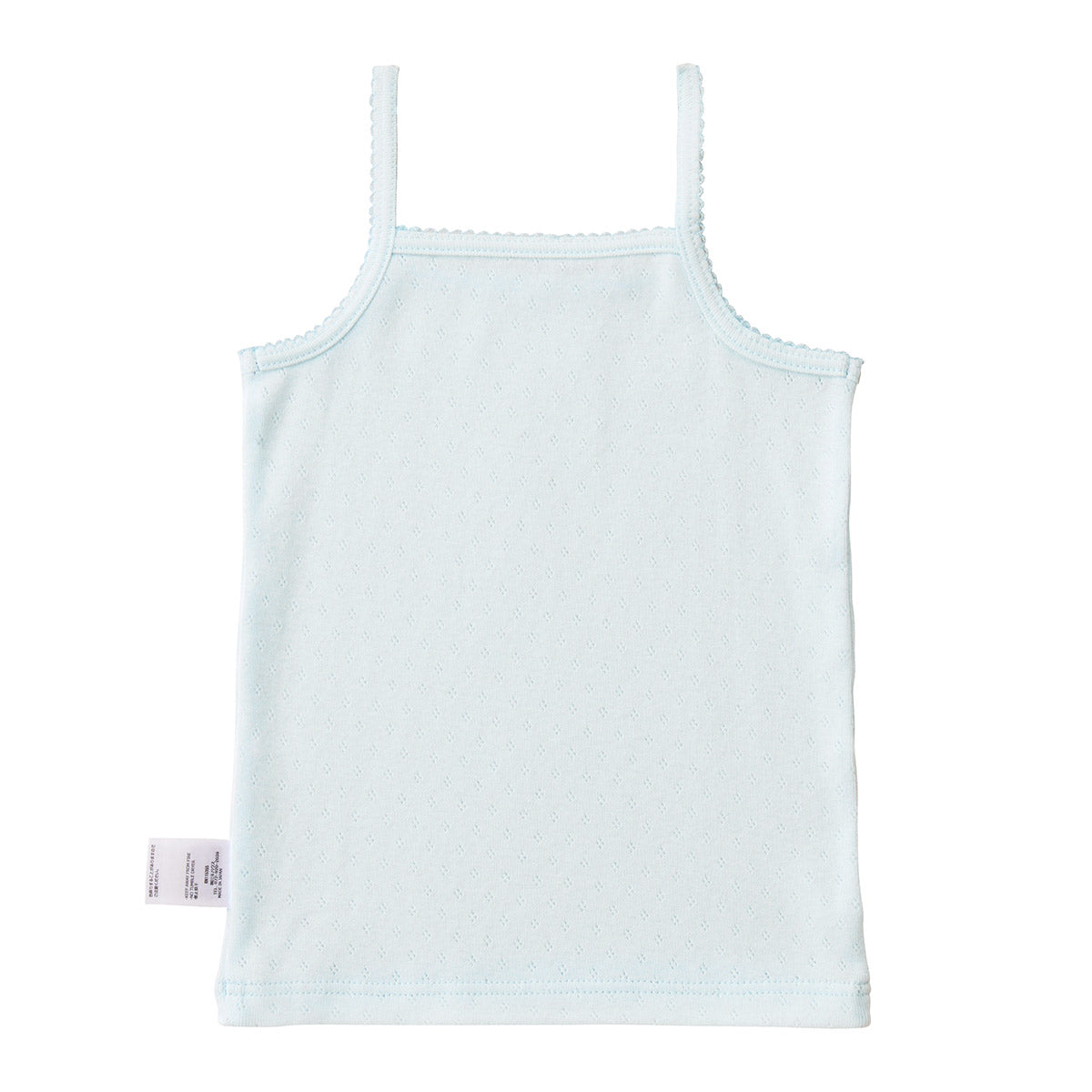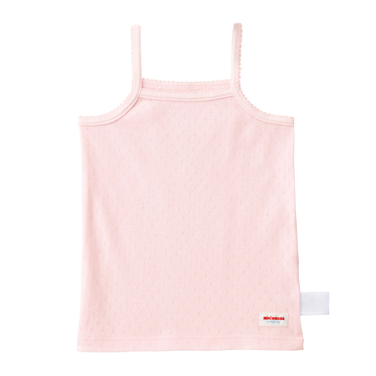 抗菌・抗ウイルス加工が施されたキャミソール肌着。キャミソール肌着は、お洋服の襟元から出ることもなく、安心してお使いいただけます。軽くて清涼感のある夏向きの肌着で、暑い日も快適にすごせます。ご入園ご入学に合わせてご用意していただくのはもちろん、ちょっとしたプレゼントにも喜ばれるアイテムです。