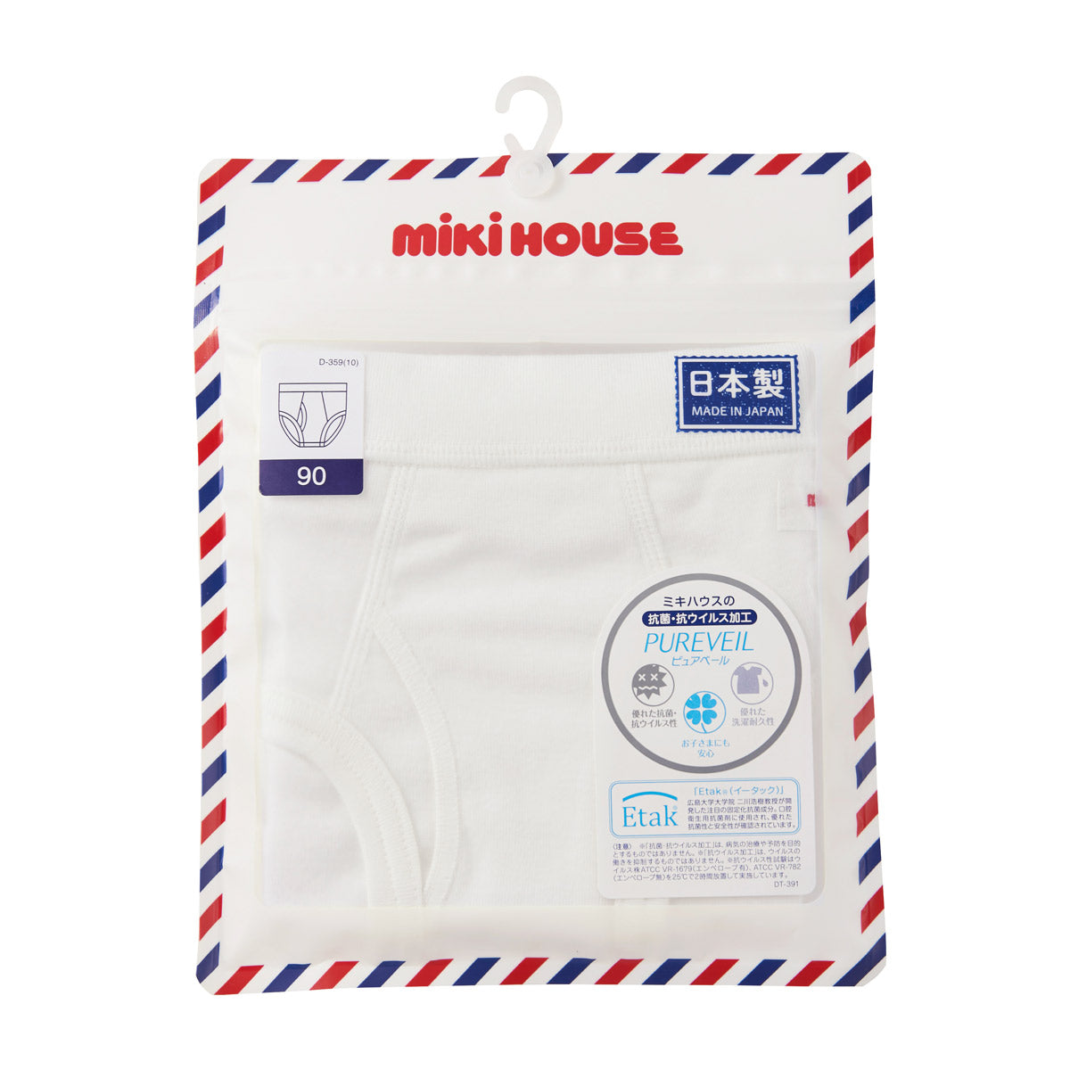 抗菌・抗ウイルス加工が施されたブリーフパンツ。幼稚園、保育園生活や学校生活に、無地の肌着のご用意があると安心です。ちょっとしたプレゼントにも喜ばれるアイテムです。
