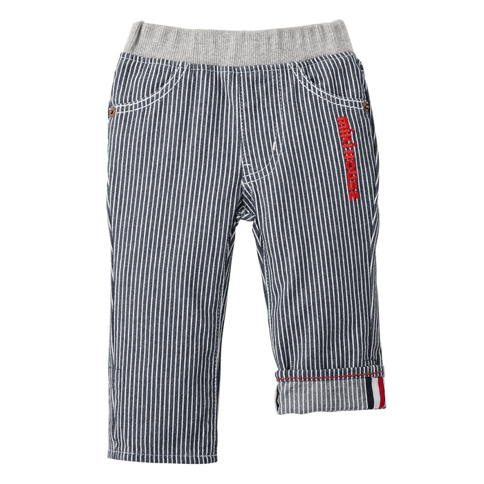 定番のパンツにブランドロゴの刺繍が入って、ミキハウスならではの引き締まった印象に。