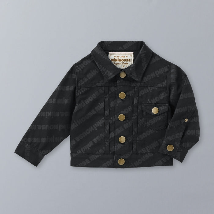 ミキハウスのロゴがプリントされたデニム生地はとても個性的。柔らかさと特別な風合いを出すために、洗い加工とねじれや縮みを抑える加工を施しています。