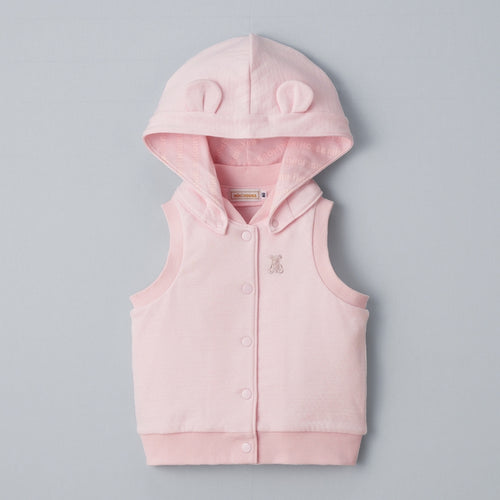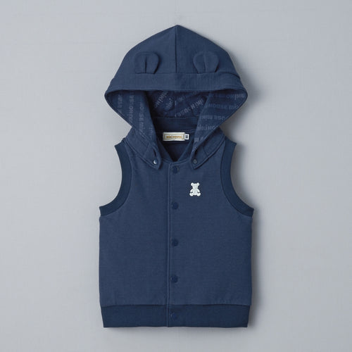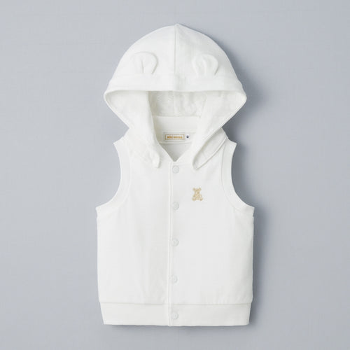 海島綿の接結カノコ天竺を使用したパーカーです。胸元にはラメ糸でワンポイントのベア刺繍を施しました。かわいい耳付きのフード裏は同色のロゴの総柄になっています。