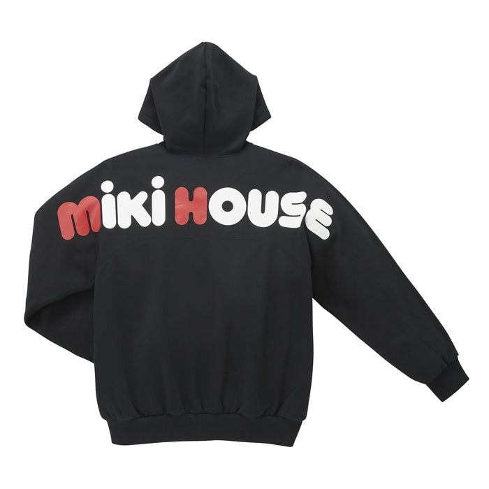 バックスタイルに大きくロゴがあしらわれたフード付きパーカーです。