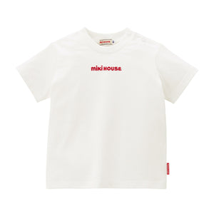 胸元のロゴの刺繍は光沢のある糸を使用し、上品でミキハウスらしい赤と白で、サイズが大きくなりました。