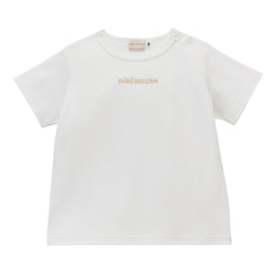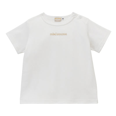 胸元に金糸でミキハウスロゴをあしらいました。上品でシンプルなデザインだからこそ、上質感が伝わる一着です。
