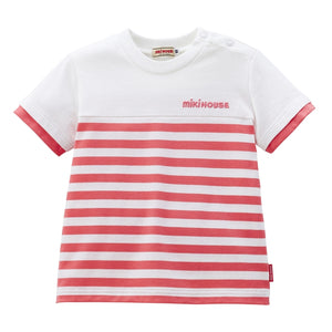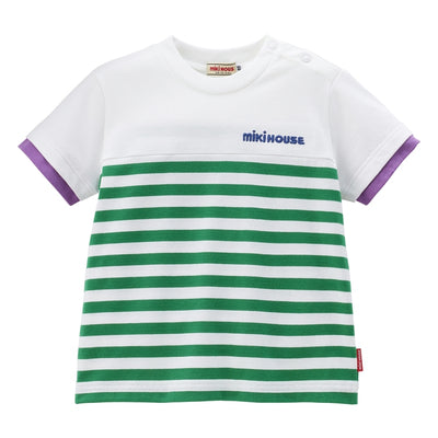 ミキハウスLOGO刺繍の半袖ボーダーTシャツです。