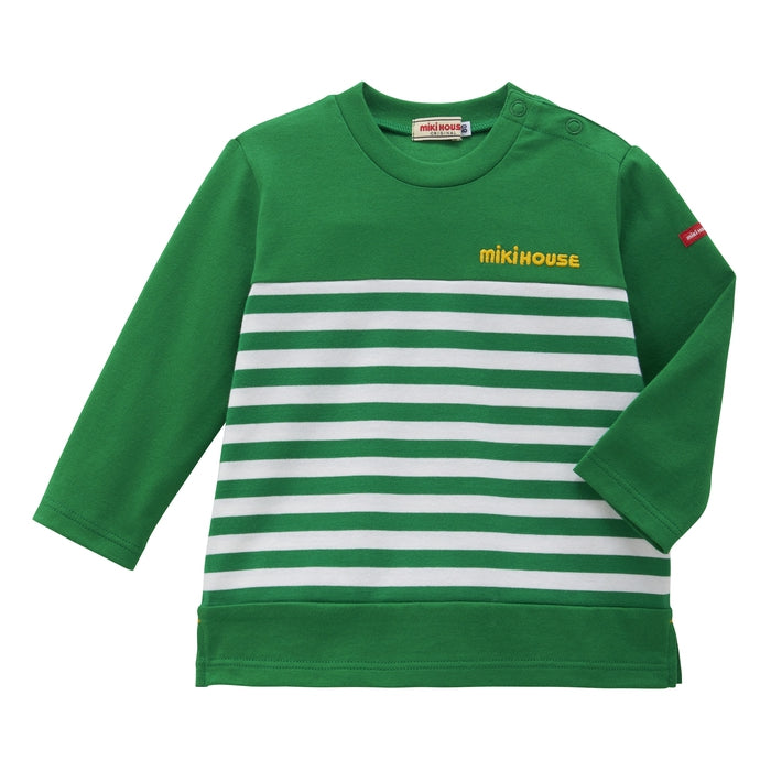 ミキハウスLOGO刺繍の長袖ボーダーTシャツです。
