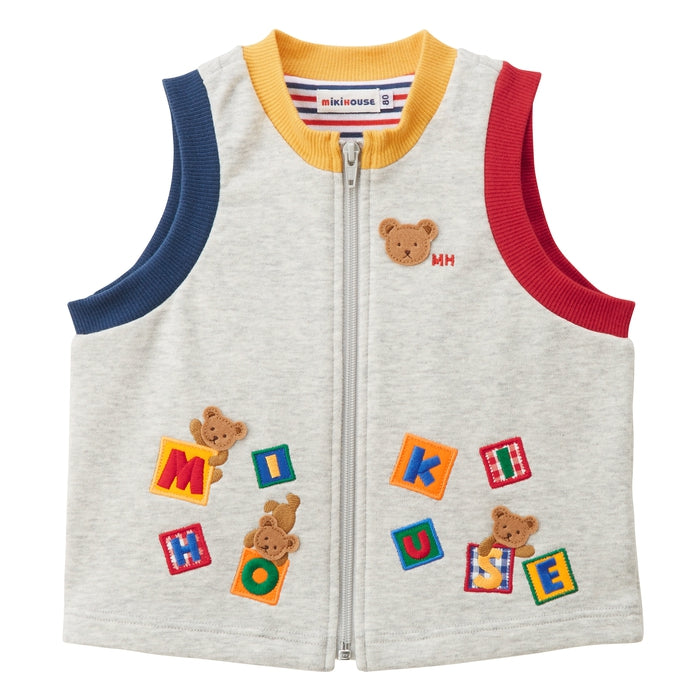 プチうさとテディロゴのレトロなデザインがかわいい前開きベスト♪