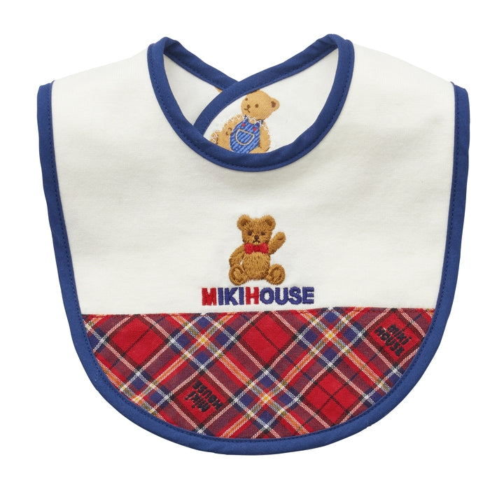 チェック使いがかわいい表面に、裏面はミキハウスベアの総柄プリントで、一枚で二度うれしいアイテムです。