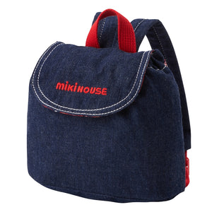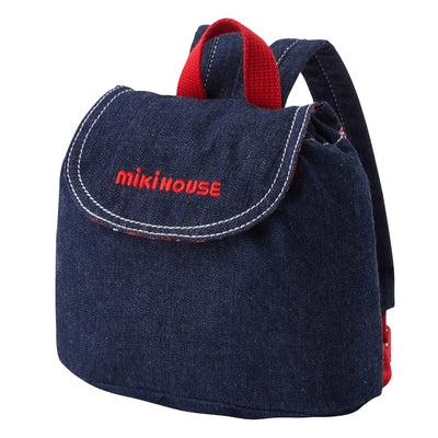 フラップの裏地にミキハウスチェックを使用した、上品なデニムリュックです。