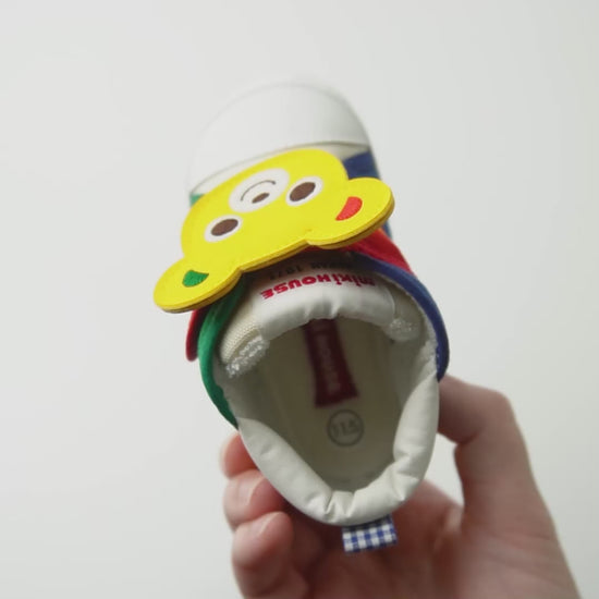 セカンドシューズで大人気のプッチーとうさこの顔ワッペンが中央に大きくデザインされたインパクトのあるプレシューズです。