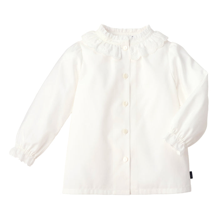 - ブロード (衿上フリル)シフォン (衿下フリル・袖口フリル)綿レース