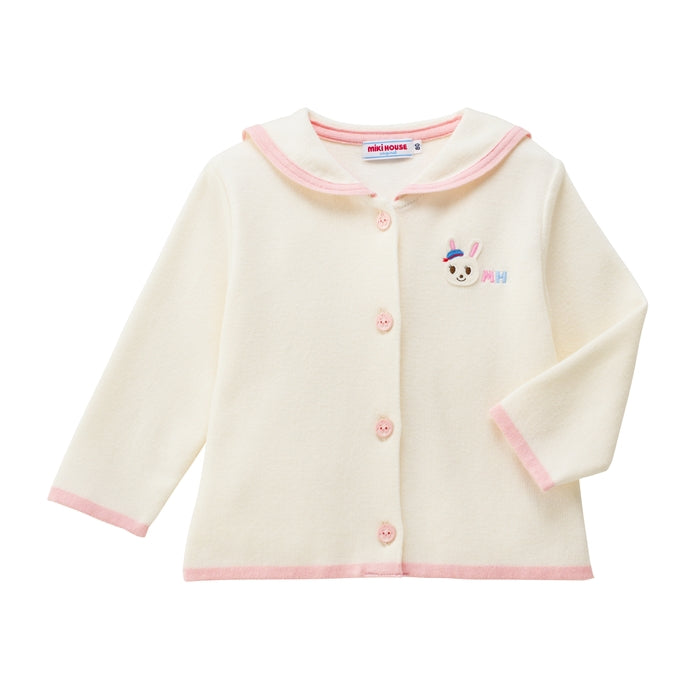 セーラー衿がかわいらしい綿ニットのカーディガンです。
