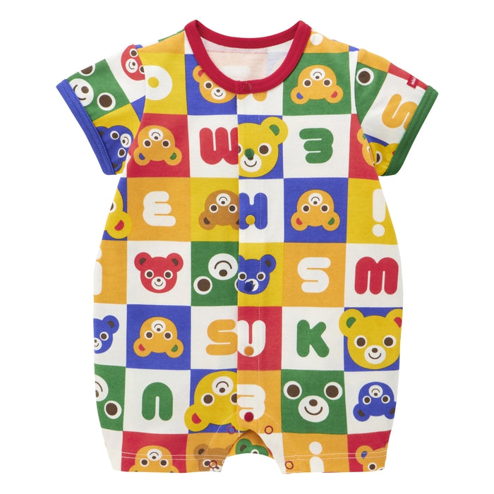 パズルブロックを並べたような愉快なデザインの総柄ショートオールです。