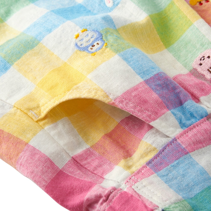 - (ローズ)先染ギンガム (無地部分)ブロード (マルチカラー)麻混先染格子 (無地部分)ダンガリー