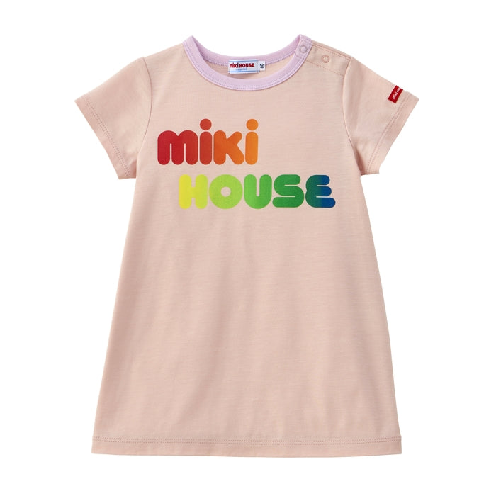 ネオンカラーのミキハウスロゴがポイントのワンピースです。