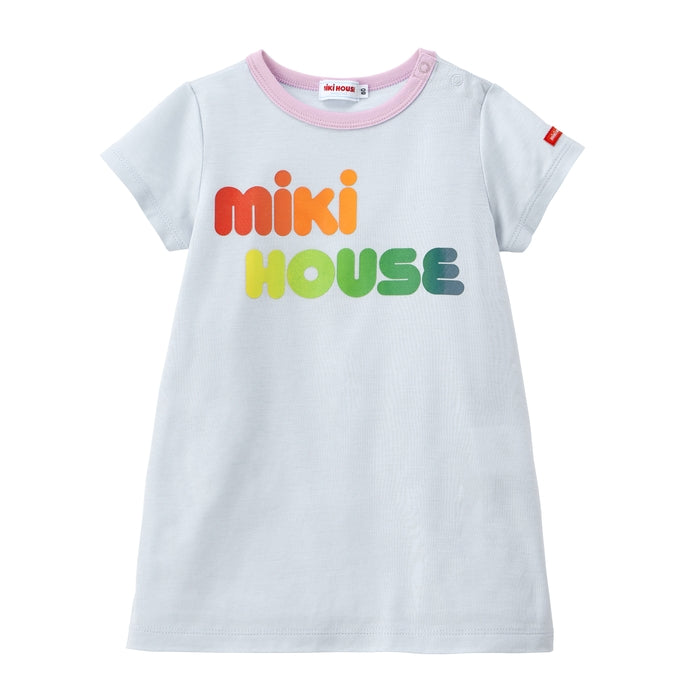 ネオンカラーのミキハウスロゴがポイントのワンピースです。