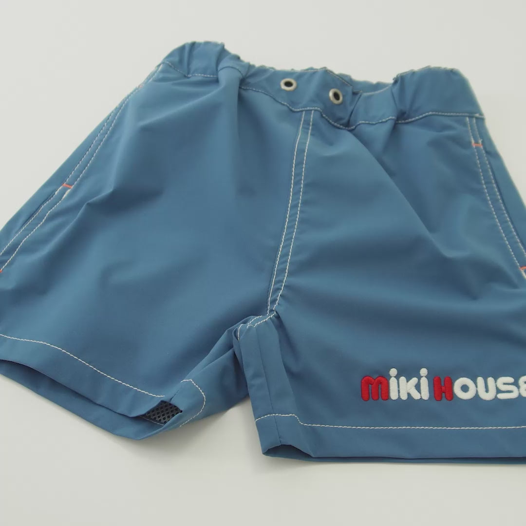 さりげないミキハウスロゴが刺繍された5分丈パンツです。