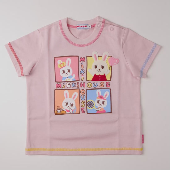 ブロックの中に、スポーツ、カフェするうさこなどが表現されたかわいらしい半袖Tシャツです。